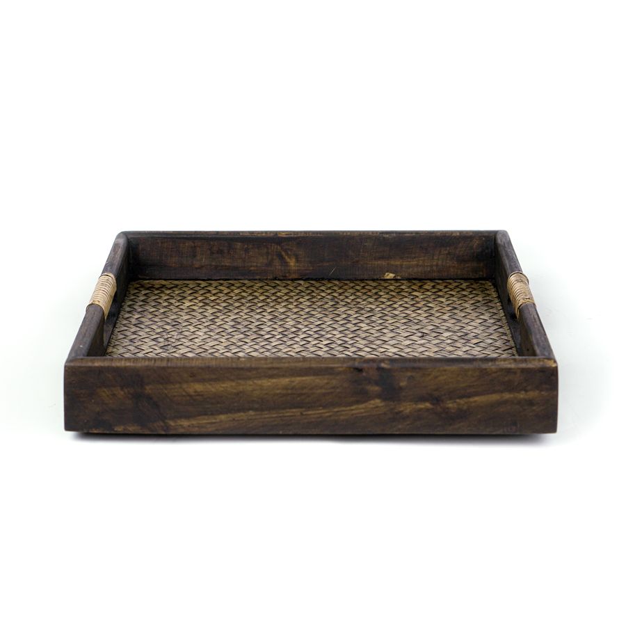 Красивый и практичный деревянный поднос для СПА-салона. Это стильный предмет украшения тайского спа-салона, непременно узнаваемый и колоритный. Ручная работа, натуральное дерево, украшенное ротангом с эффектом старения, порадует взгляд любого посетителя.
